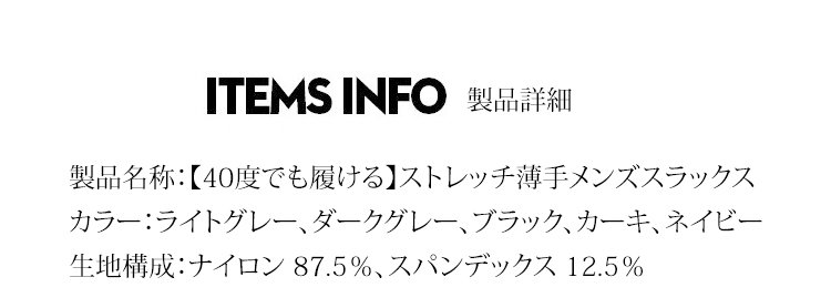 【40度でも履ける】ストレッチ薄手メンズスラックス