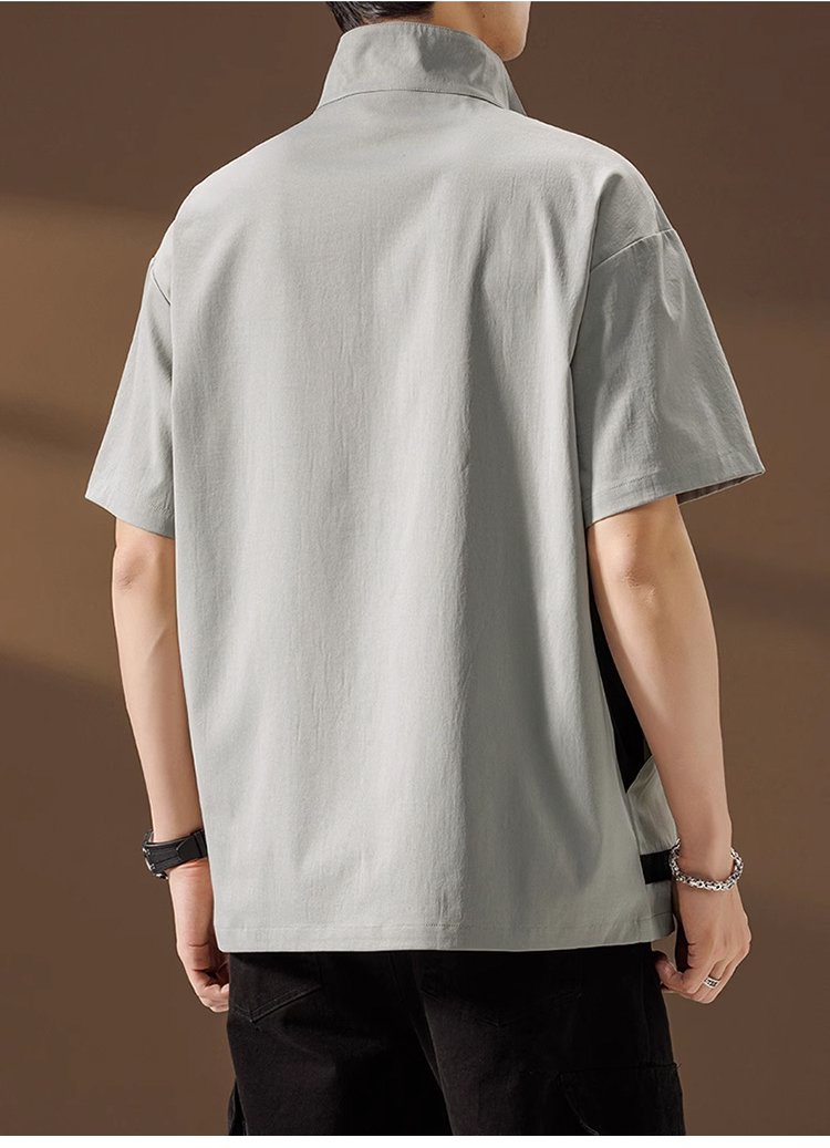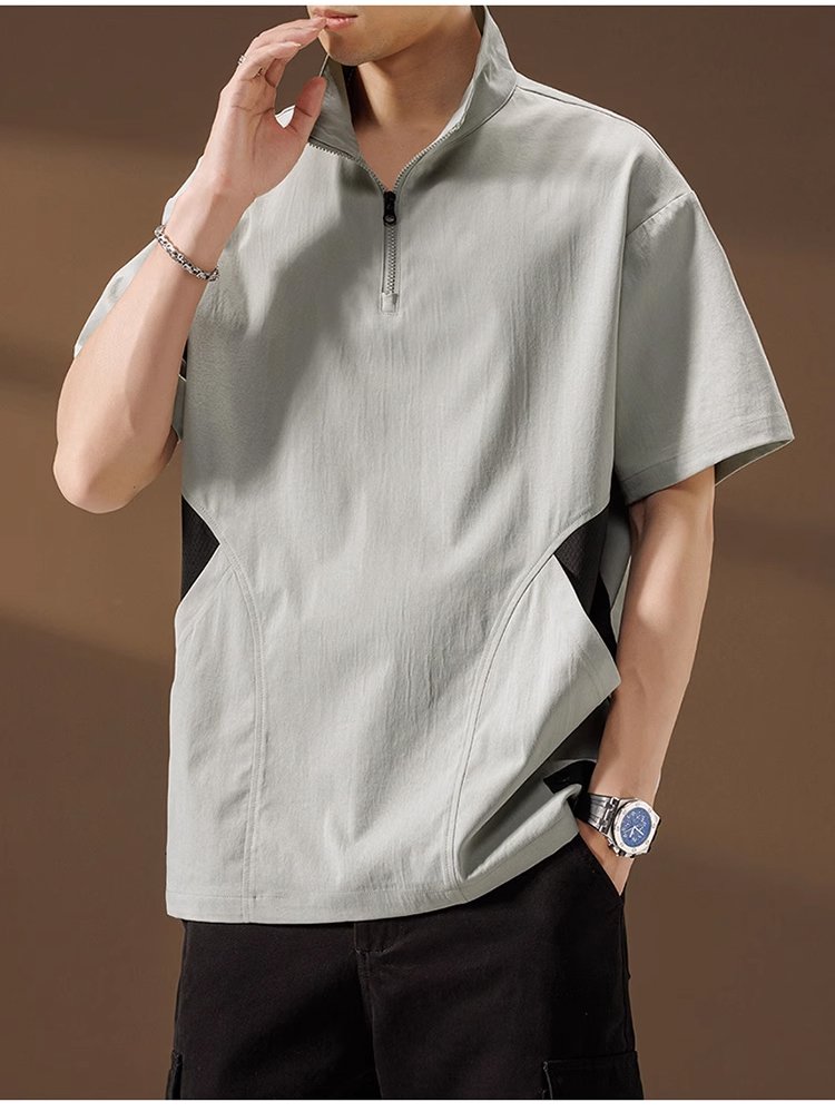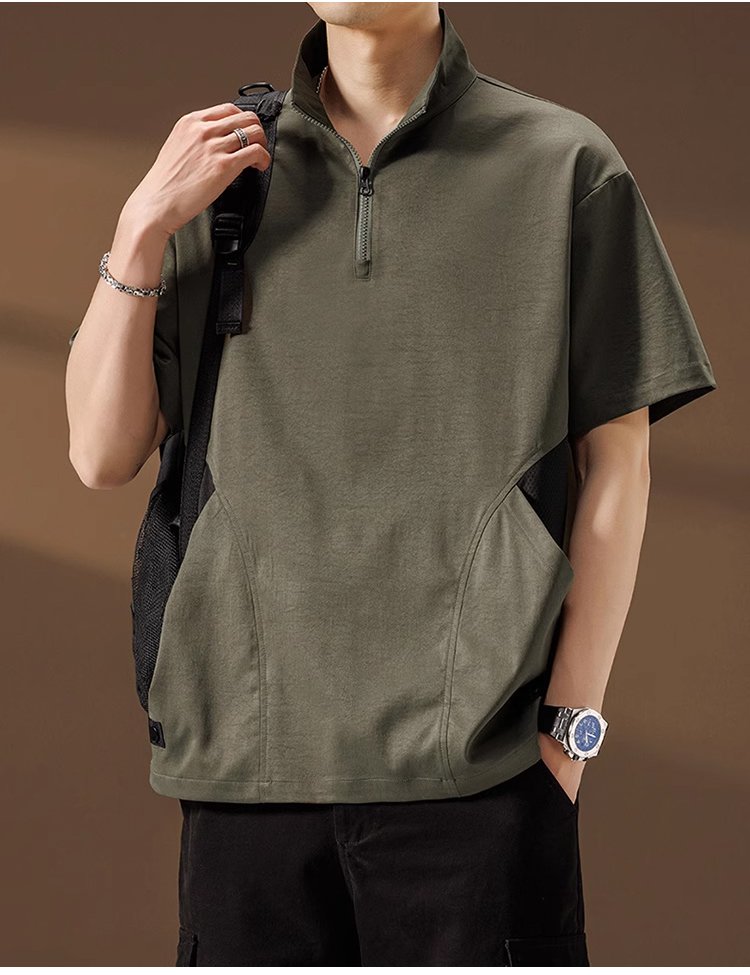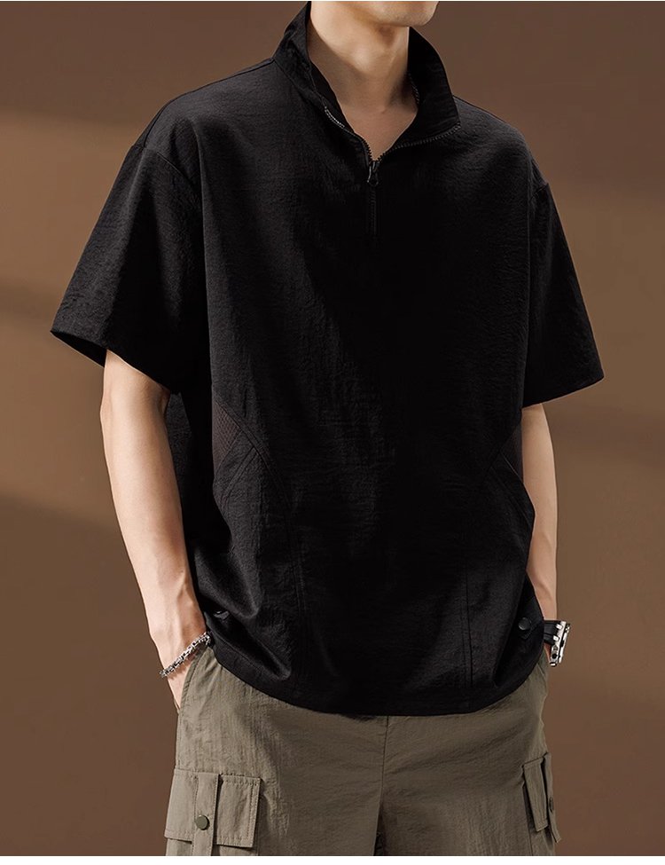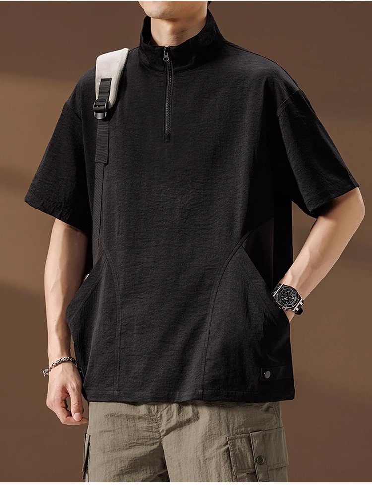 メンズ多機能ハーフジップ半袖シャツ